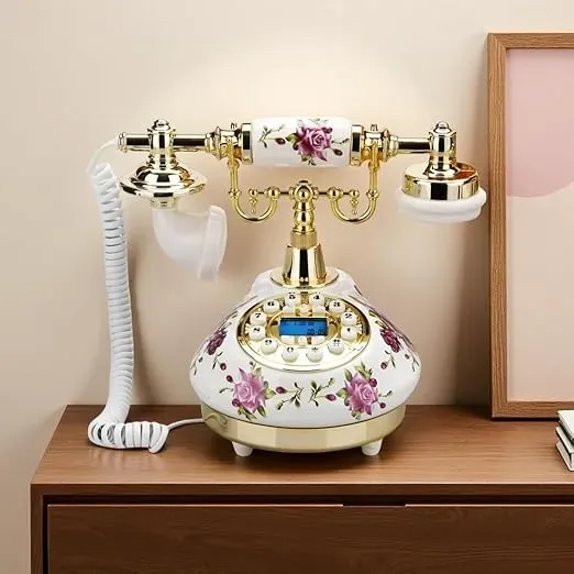 نقدم لك الهاتف الأرضي العتيق مع معرف المكالمات وتاريخ الساعة وضبط الرنين، تصميم أنيق يجمع بين الأصالة والفخامة.