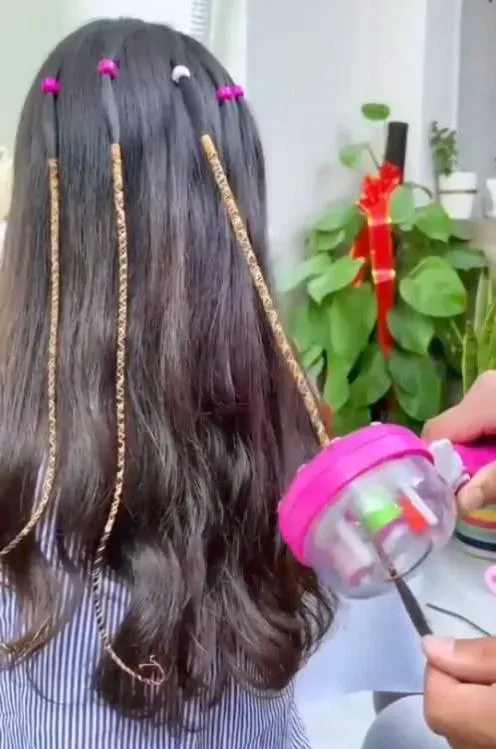 مع آلة تزيين الشعر الأوتوماتيكية 🎡 رح تزيّني شعرها بجدائل ملونة ولمسات فنية في دقائق فقط!