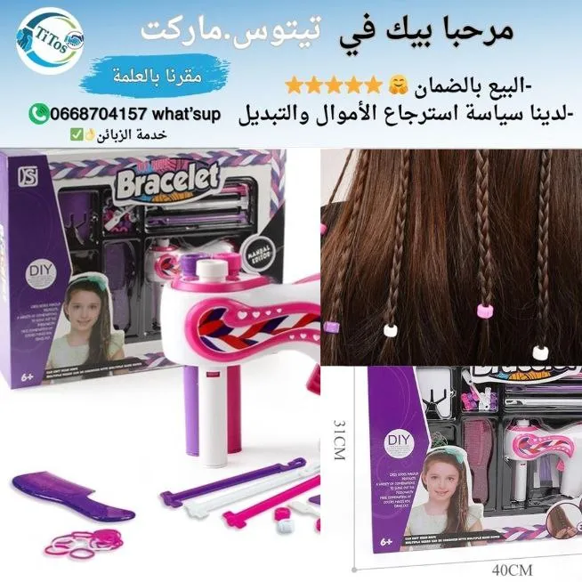 مع آلة تضفير الشعر للبنات DIY 🎀، خلي بنوتك تصنع جدائل رائعة في ثواني، وأضيفي لها خرز ملون وزينة تخليها ملكة الحفلة 👑💜