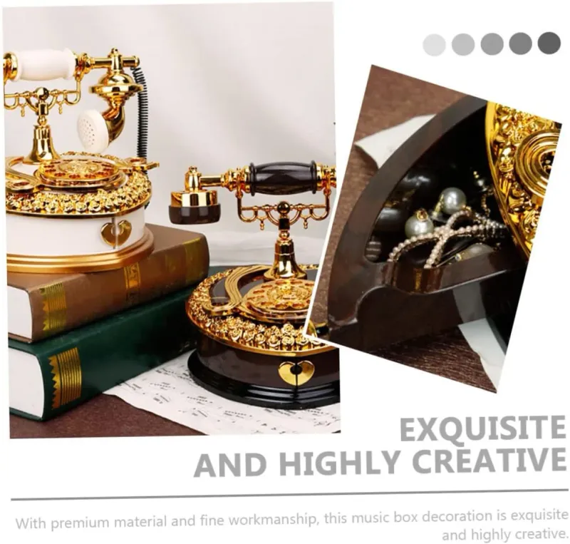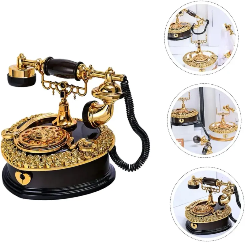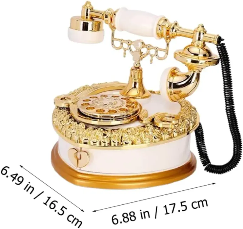 صندوق موسيقى هاتف عتيق 🕰️، يعتمد تصميم الهاتف الكلاسيكي القديم بأسلوب رجعي، أنيق جدًا ومصنوع بعناية فائقة ✨.