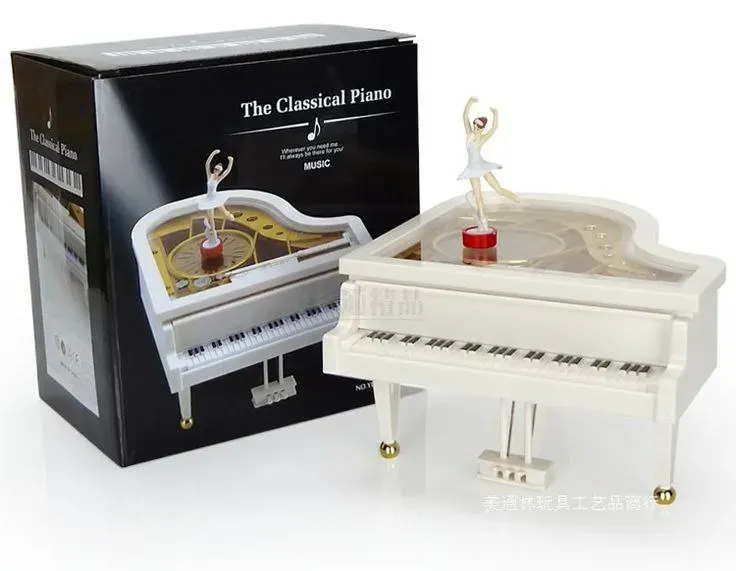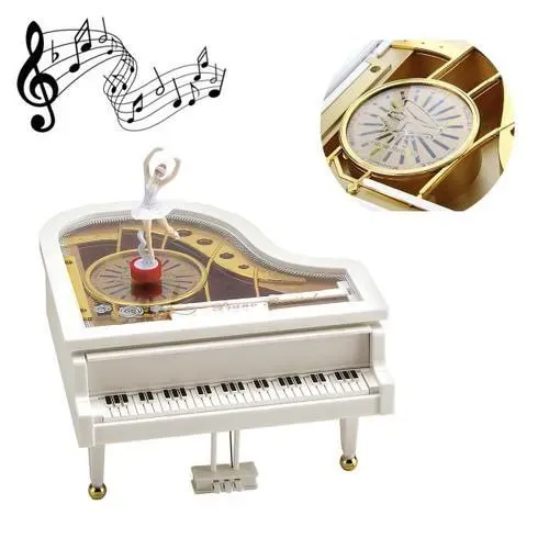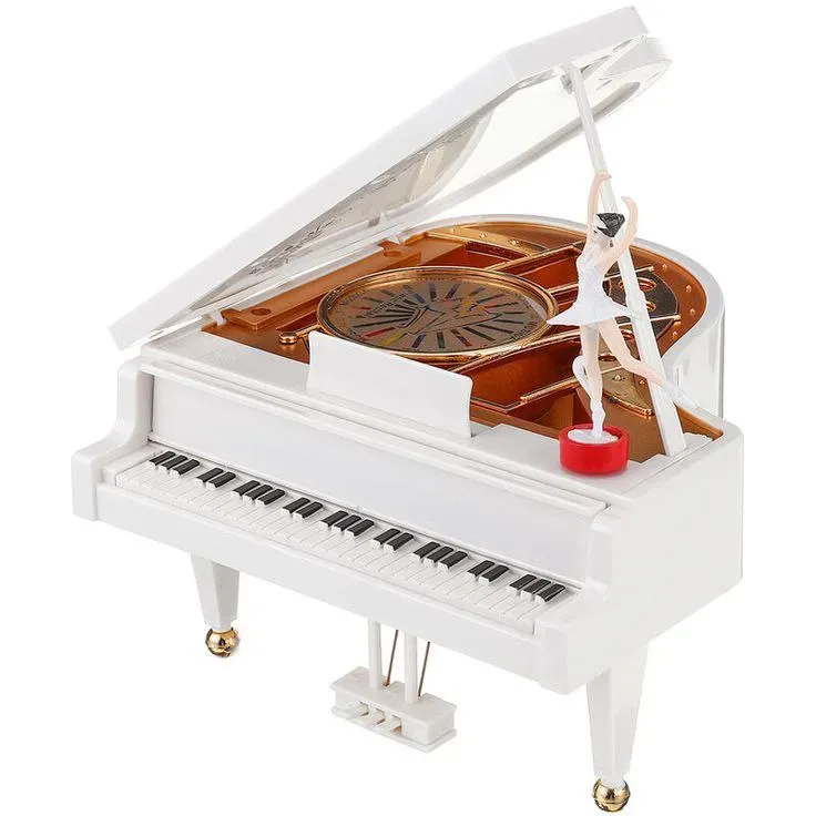 بيانو موسيقي براقصة باليه تدور بتناغم، أنيق ومثالي للهدايا.